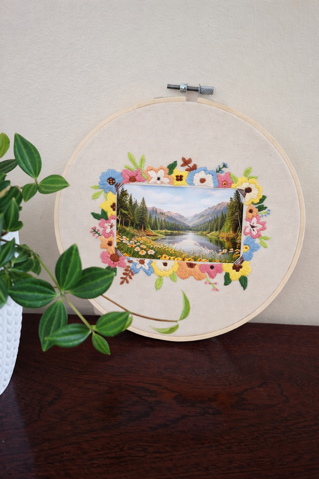 This kit includes a hoop, fabric, needles, thread, pattern and instruction manual.